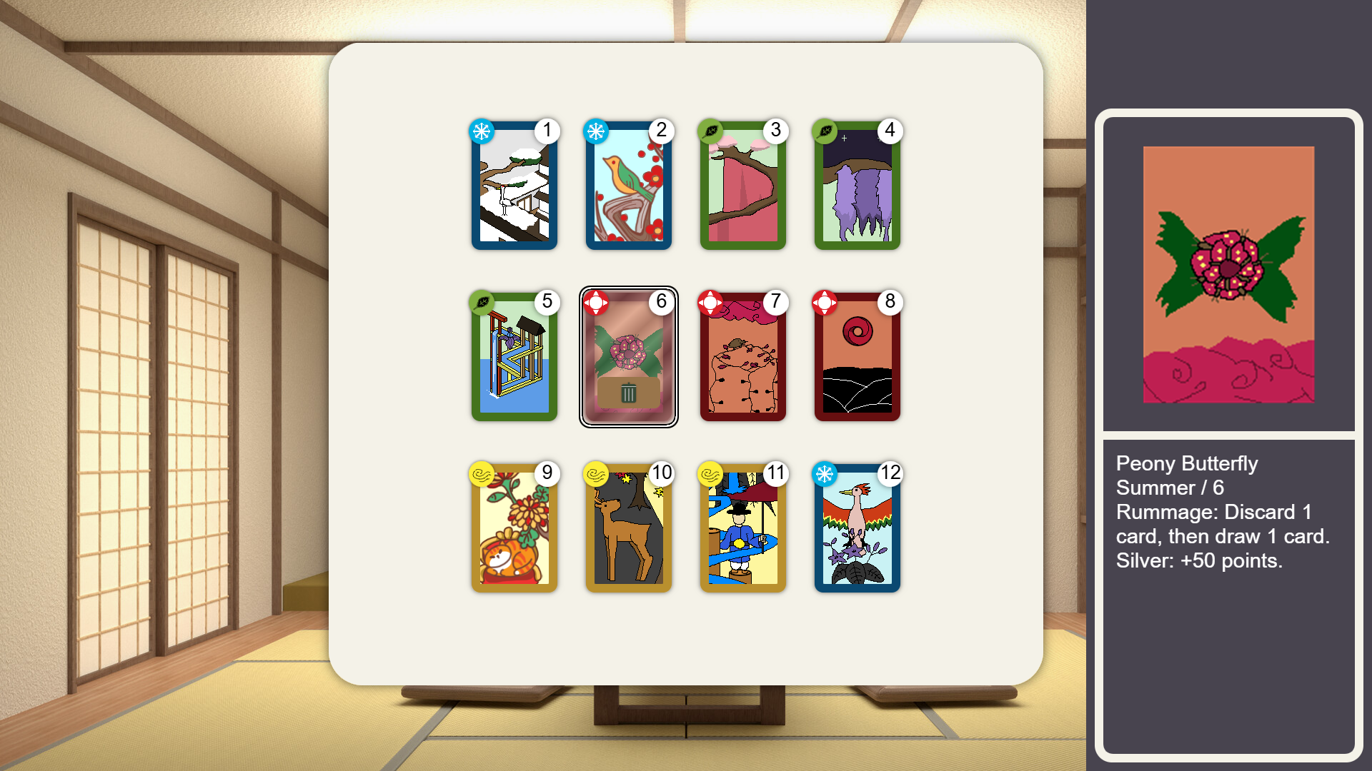 Hanafuda, maidens, and crazy combos go together in this roguelike deck builder.